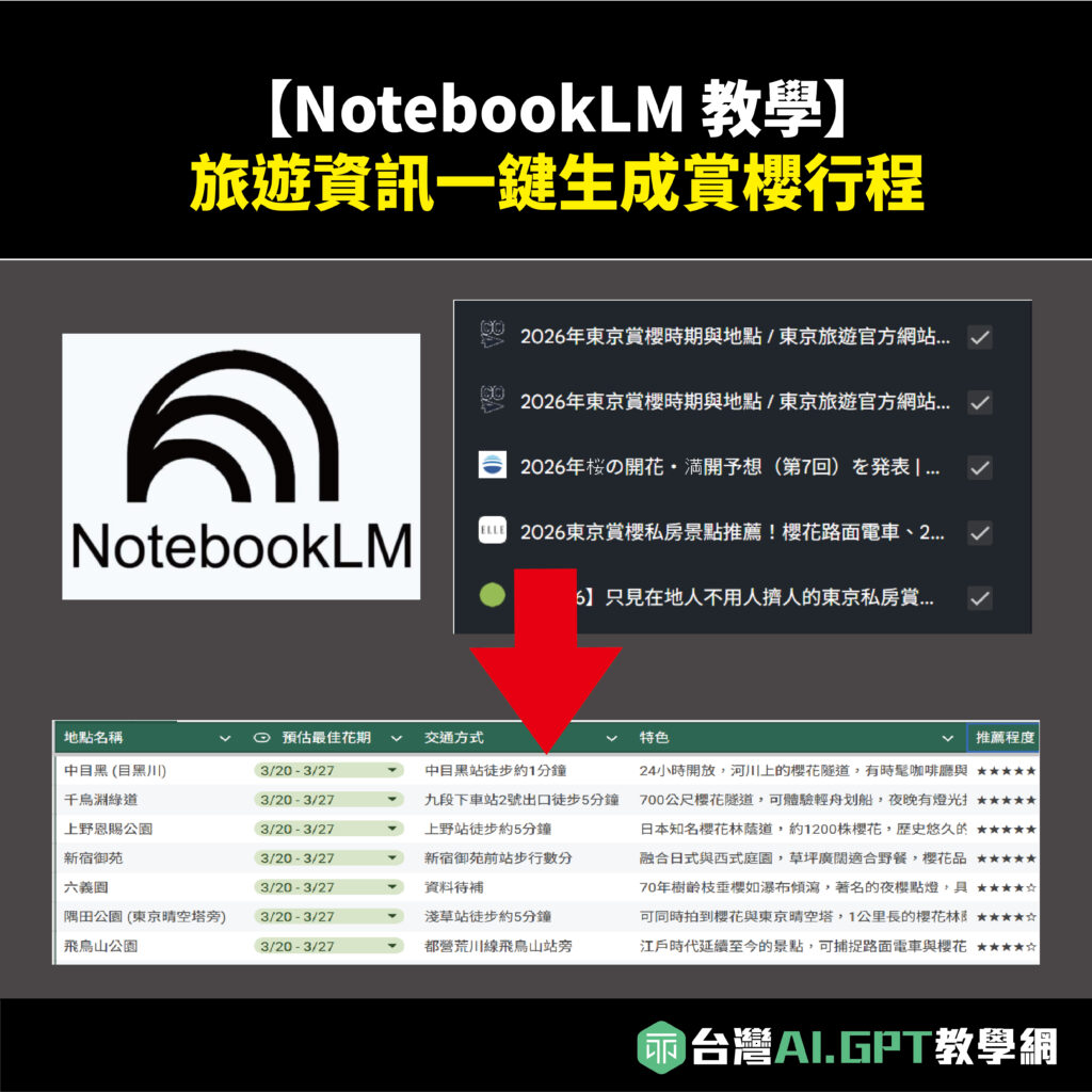 想去東京賞櫻,網頁、部落格筆記亂七八糟?別怕!「台灣 AI.GPT 教學網」教你用 NotebookLM,讓賞櫻規劃從「地獄模式」變「優雅模式」