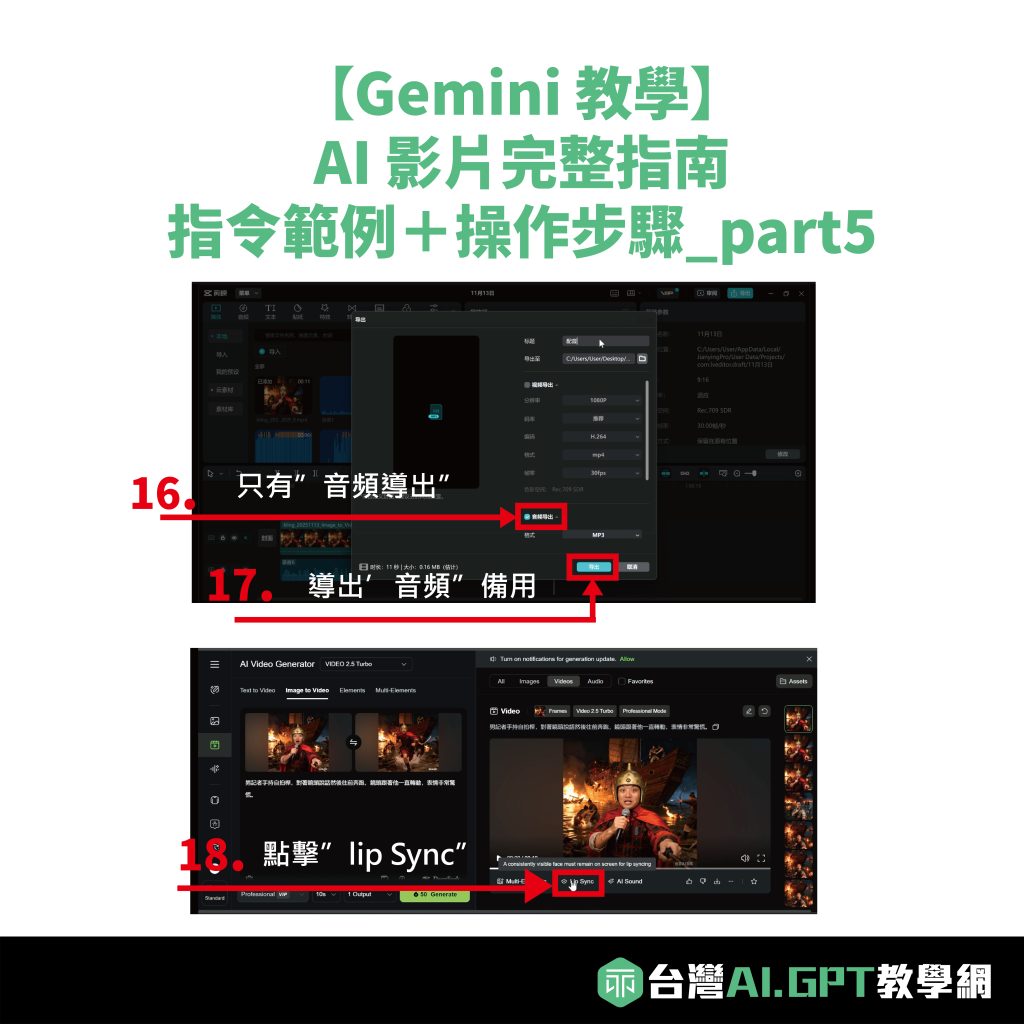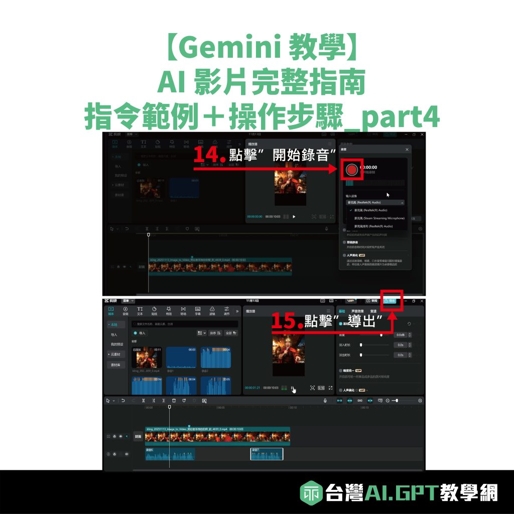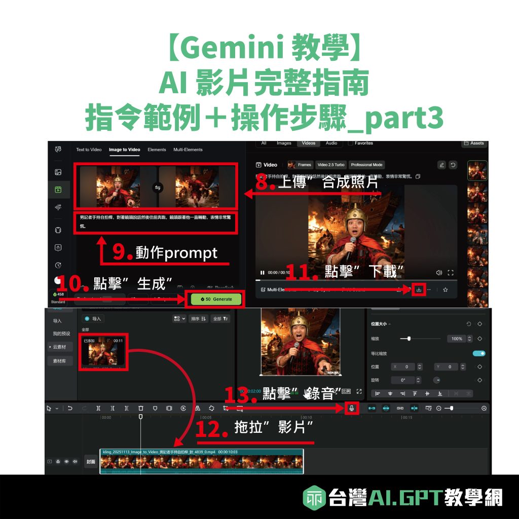 依據影片人物講話的地方配上聲音,影片內人物的口型不重要,只需要在人物開口講話的時候錄音,後面會丟到Kling AI進行對嘴的影片生成。