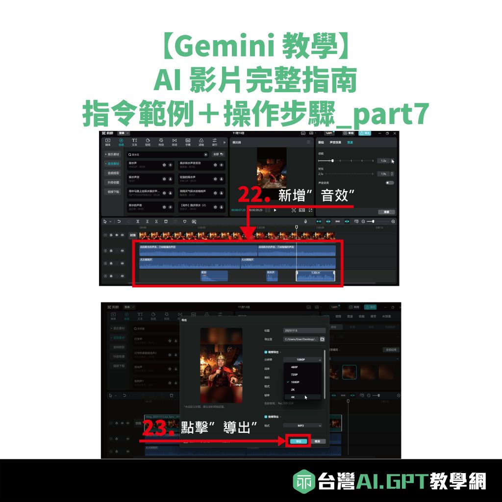 影片背景終將可能會出現的音效加入相對應的位置,這樣影片會變得更加的真實。