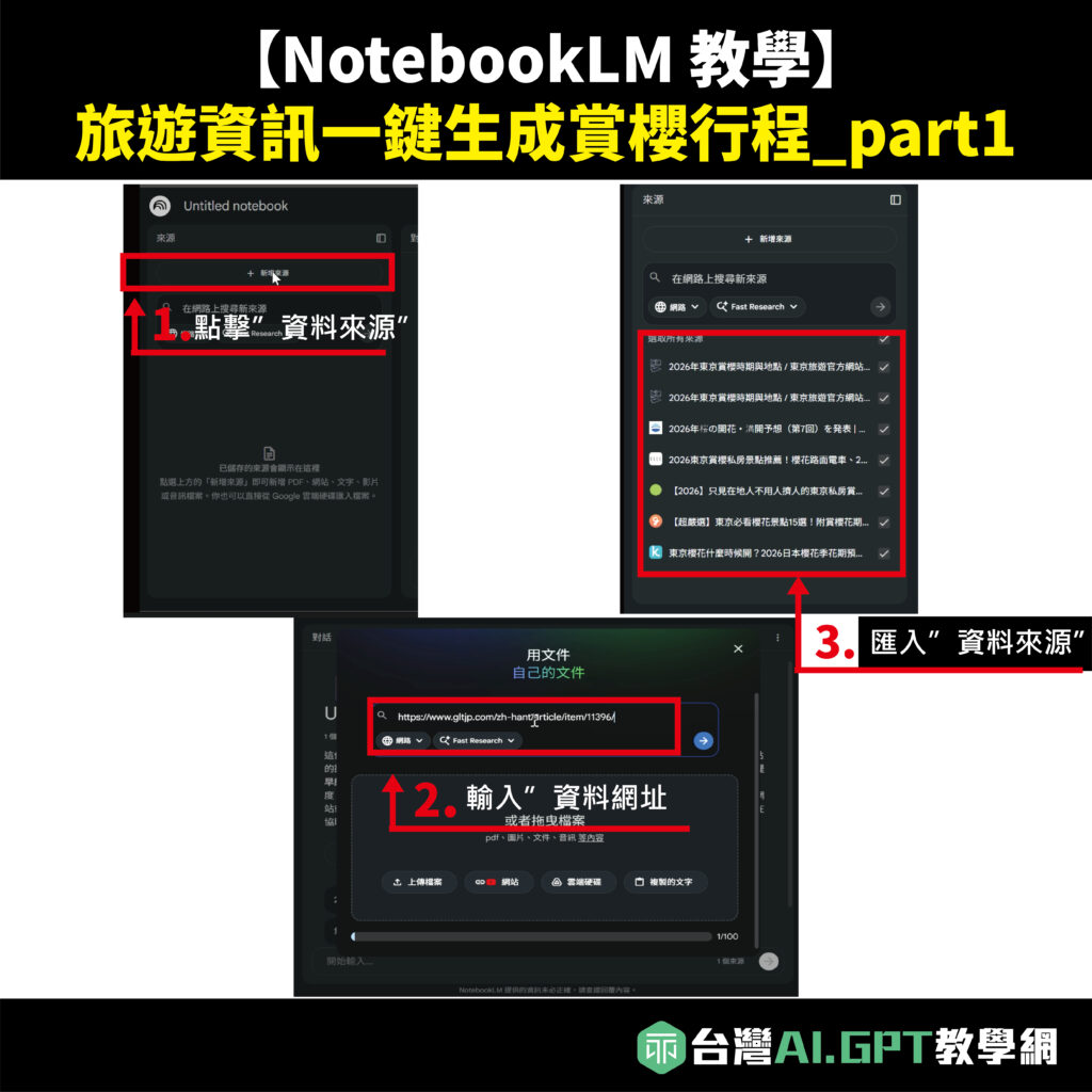 別怕!「台灣 AI.GPT 教學網」 今天要教大家用最強 AI 神器 NotebookLM,讓你的賞櫻規劃從「地獄模式」變「優雅模式」!